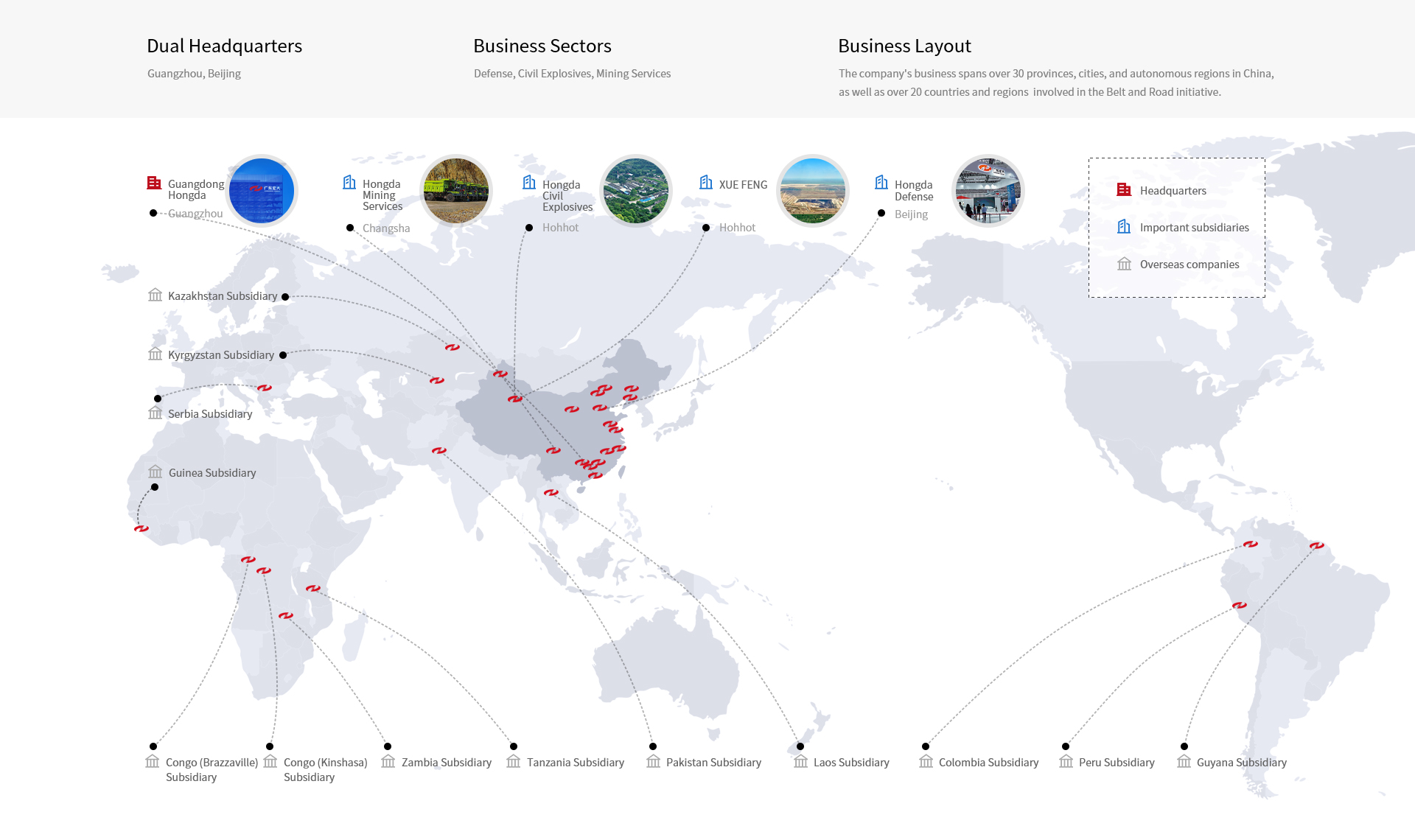 Guangdong Hongda Holding Group Co., Ltd., established in 1988, is a subsidiary of Guangdong Environmental Protection Group Co., Ltd., which is under the supervision of the State-owned Assets Supervision and Administration Commission of Guangdong Province. It is the first listed company in China providing integrated mining and civil explosive services.
